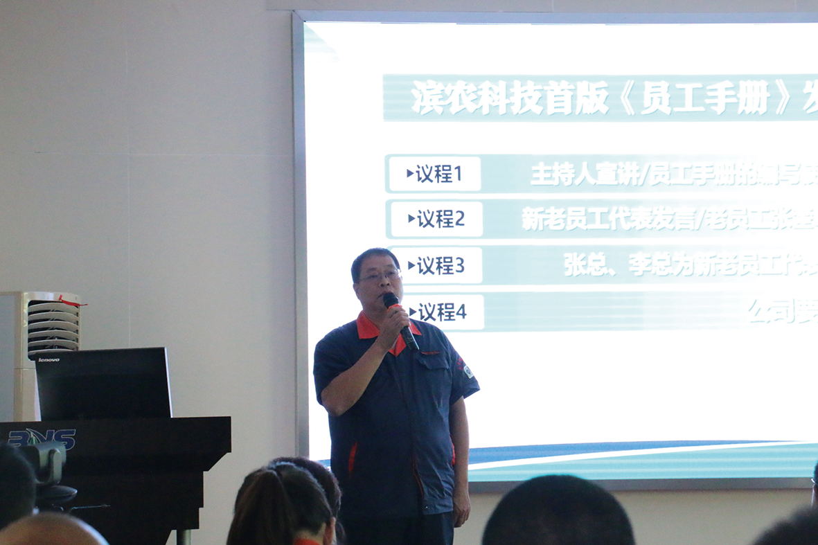 儀式上,我公司事業(yè)創(chuàng)始人、發(fā)展掌舵人黃總做了主題講話并提出要求。黃總指出,員工是企業(yè)最大的財富,公司誕生在中國農(nóng)化行業(yè)快速發(fā)展的轉(zhuǎn)換期,從試水農(nóng)化至今,歷經(jīng)二十七年風(fēng)雨歷程,從0到1,從小到大,是全體員工努力奮斗的結(jié)果,未來必將有更加健康、更為長遠的發(fā)展,期望每一位員工都能夠與公司發(fā)展同頻共振,用個人的成長進步推動公司的成長發(fā)展;同時《員工手冊》是對公司和員工行為雙向的規(guī)范和約束,員工在工作生活中要時刻謹遵企業(yè)規(guī)范,公司要時刻把員工和員工的利益放在公司重中之重;只有員工的成功才會使企業(yè)成功,最后,黃總要求全體管理人員要率先垂范,帶好團隊,真正把濱農(nóng)文化融入到日常的工作和生活中,使進入公司的每一位員工都能擁有幸福的生活、開心的工作,和更為美好的未來。