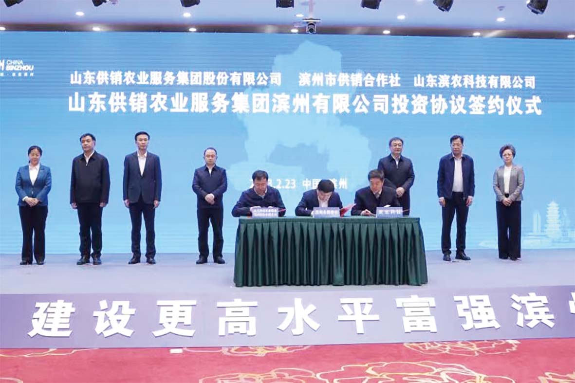 張傳忠、李春田為“濱州市供銷農(nóng)業(yè)社會化服務(wù)聯(lián)合體”揭牌。省供銷社黨組成員、監(jiān)事會副主任張榮慶,副市長畢志偉代表山東省供銷合作社、市政府簽訂了戰(zhàn)略合作協(xié)議。山東供銷農(nóng)業(yè)服務(wù)集團(tuán)股份有限公司與濱州市供銷社、山東濱農(nóng)科技有限公司簽訂了山東供銷農(nóng)業(yè)服務(wù)集團(tuán)濱州有限公司投資協(xié)議;濱州市供銷社與山東能源集團(tuán)國際酒店有限公司簽訂戰(zhàn)略合作協(xié)議。