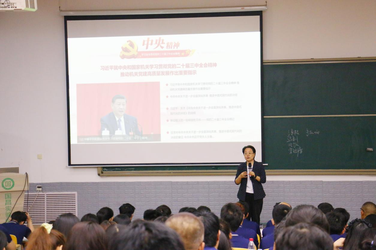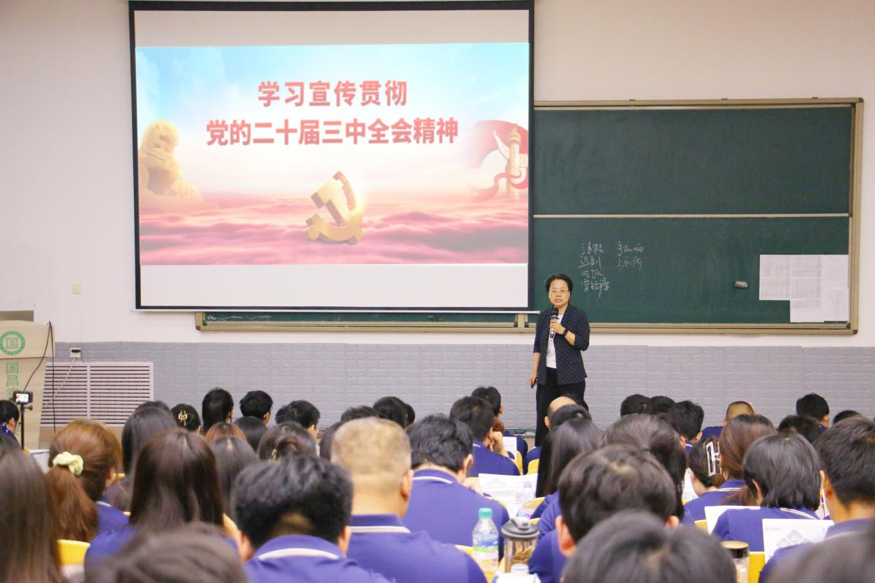 本次宣講由山東濱農科技有限公司工會副主席戚哲芬主講,她以獨特的視角、深厚的理解力和豐富的表現力,不僅深刻闡述了黨的二十屆三中全會的核心價值,更將學習全會精神與濱農科技的宏偉發展藍圖緊密相連。戚主席從三個維度進行了深度解析: