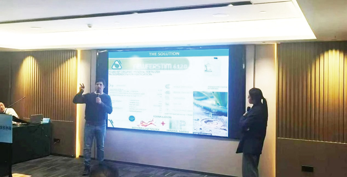 意大利 SCL 集團(tuán)東亞及北亞董事總經(jīng)理孫總講述了SCL集團(tuán)發(fā)展歷程。自 2003 年起,SCL集團(tuán)憑借資源與研發(fā)優(yōu)勢進(jìn)軍農(nóng)業(yè)領(lǐng)域,將高品質(zhì)元素資源融入植物營養(yǎng)體系,成果獲全球贊譽(yù)。隨后,SCL集團(tuán)中國分公司技術(shù)總監(jiān)劉振俊華專業(yè)解讀濱農(nóng)春華與濱農(nóng)利豐收兩款新品。濱農(nóng)春華以植物提取生根啟動因子,于極端逆境也能激發(fā)生根效能;濱農(nóng)利豐收運(yùn)用多酚絡(luò)合技術(shù),實(shí)現(xiàn)硅的同源性吸收,提升養(yǎng)分?jǐn)z取效率。意大利SCAM公司全球科學(xué)技術(shù)總監(jiān)Marco Moretti分享專業(yè)洞見與前沿技術(shù)成果,并重點(diǎn)介紹與我公司合作的三款產(chǎn)品——NEWFERSTIM Ca Mg、ABSTRIM SW 30 和TRIOSTIM,其中Abstrim SW30作為歐洲生物刺激素法規(guī)改革后第二批認(rèn)證產(chǎn)品,優(yōu)勢顯著備受關(guān)注。