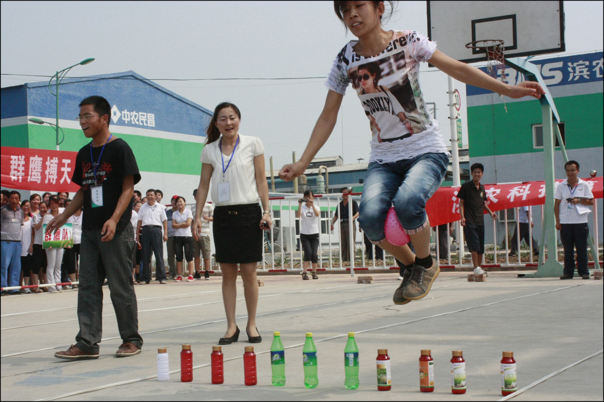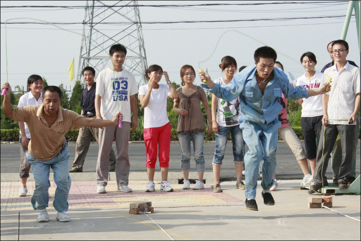 開幕式上,濱農禾韻藝術團團員高舉藝術團團旗走在前列,各參賽運動員代表本隊依次展示入場。副總經理孟令濤擔任總裁判長,并熱情洋溢地致開幕詞。比賽項目包括跳繩、拔河、單腳火車跑、“迷你”鐵人三項和雙腿夾球接力五項,各項目雖簡單快樂有趣,卻非常考驗運動員之間的配合和默契。