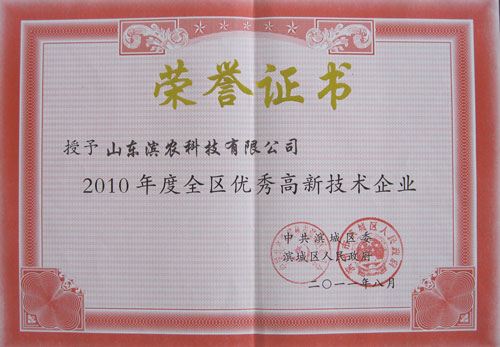 8月9日,由中共濱城區委及濱城區人民政府共同舉辦的濱州市濱城區科學技術大會在濱城區創業大廈召開。會議傳達了中國科學技術協會第八次全國代表大會及2011年國家、省、市科技大會會議精神。大會表彰了濱城區2010年度科技工作先進單位和先進個人、高新技術企業、民營科技企業、企業技術中心等。我公司榮獲“2010年度全區優秀高新技術企業”稱號。黃總出席會議,并代表獲獎單位做典型發言。