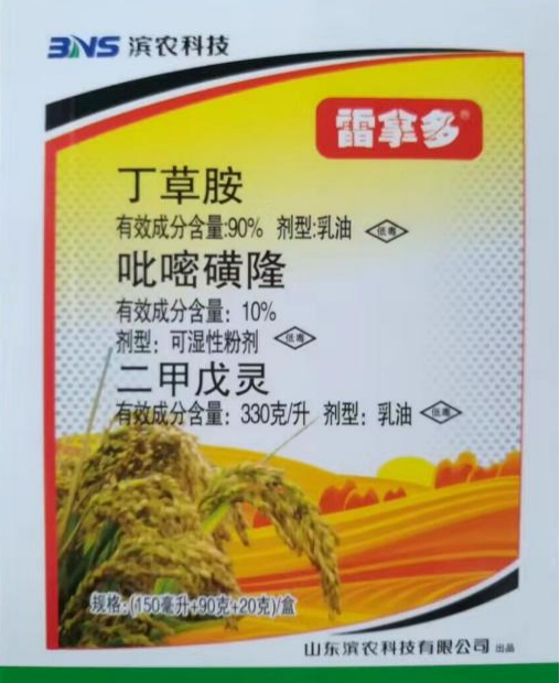 (一)旱直播稻封閉方案:推薦雷拿多、多達(dá)糧、濱農(nóng)美稻(建議混用稻斧)等。