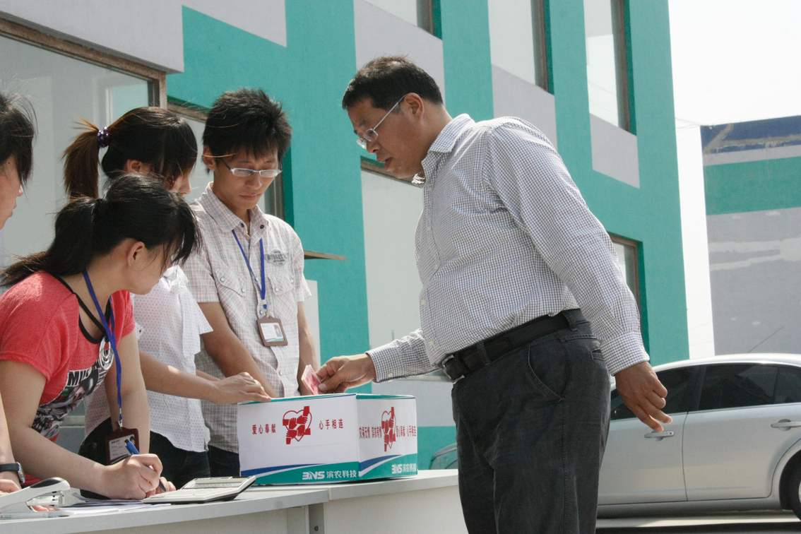 據了解,張冠誠今年47歲,家住濱州堡集,是我公司敬崗愛業的老員工。其家庭情況非常困難:父親常年有病,靠藥物維持治療;在2010年的一場車禍中,兒子骨折,兒媳去世,巨大的醫療開支難以為繼;禍不單行,張冠誠又確診身患急性白血病,給這個貧困的家庭雪上加霜。公司獲知這個情況后,立即行動起來,6月4日下午,黨總支、工會、企業文化部、人力資源部聯合組織了“我們在一起,愛心拯救生命”的集體募捐活動。全體中高層干部齊聚辦公樓前參加募捐活動,公司董事長黃延昌、工會主席李華率先捐款,科室員工也紛紛走到捐款箱前,獻出一份愛心。各分廠車間也陸續將車間員工捐助的愛心款匯集到人力資源部。活動結束后,共1150名同事累計捐款48693元。同時公司工會也拿出10000元專項救助款,用于馳援張冠誠抗擊病魔。